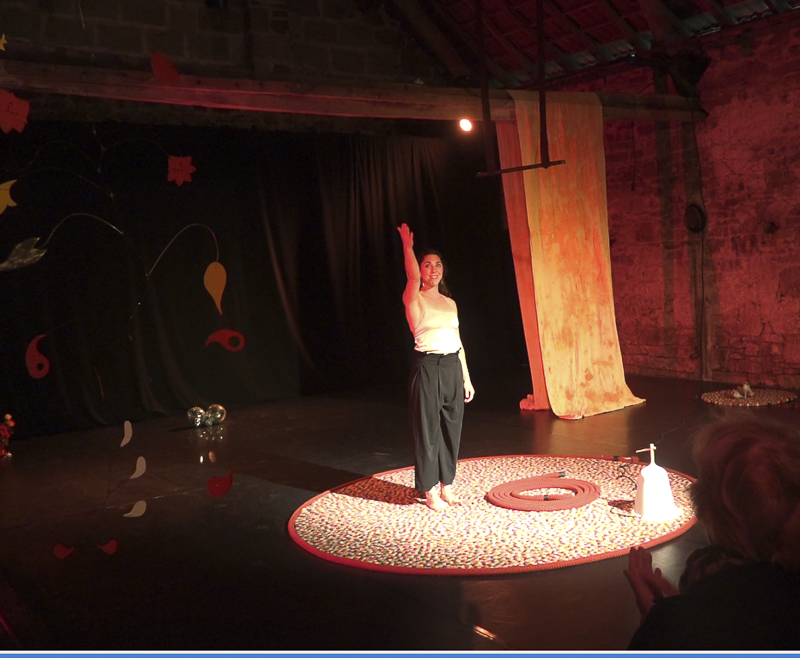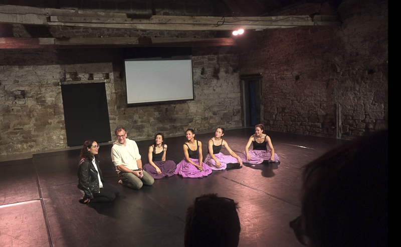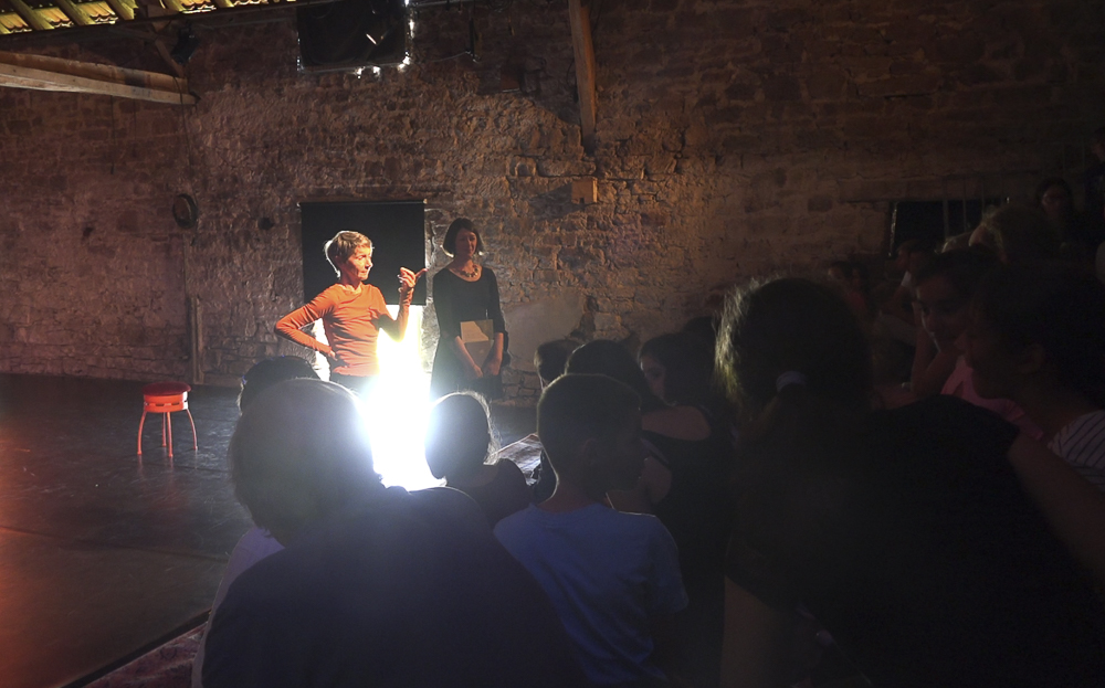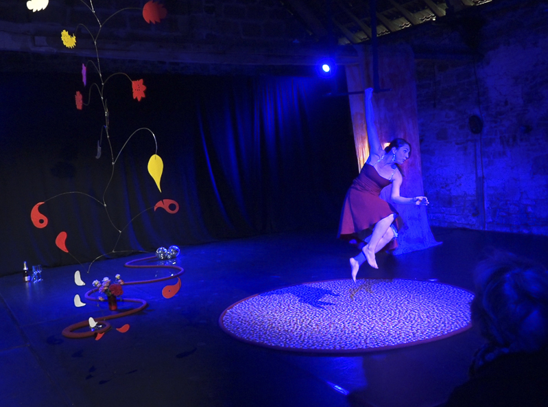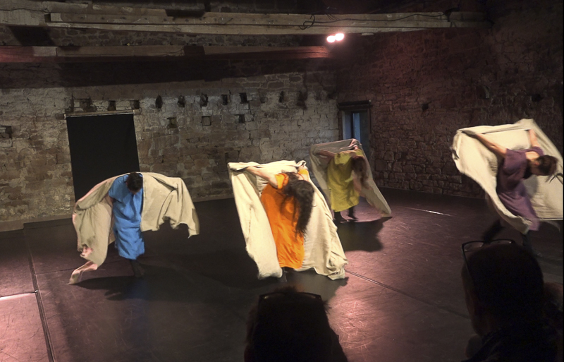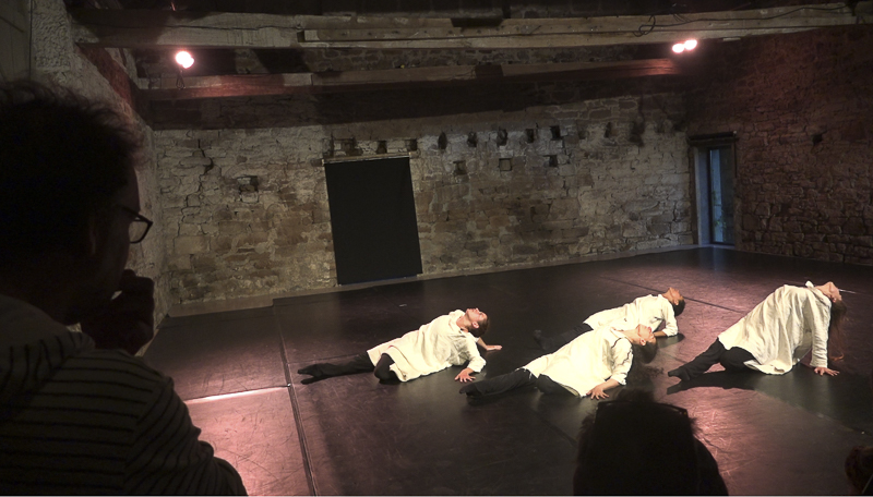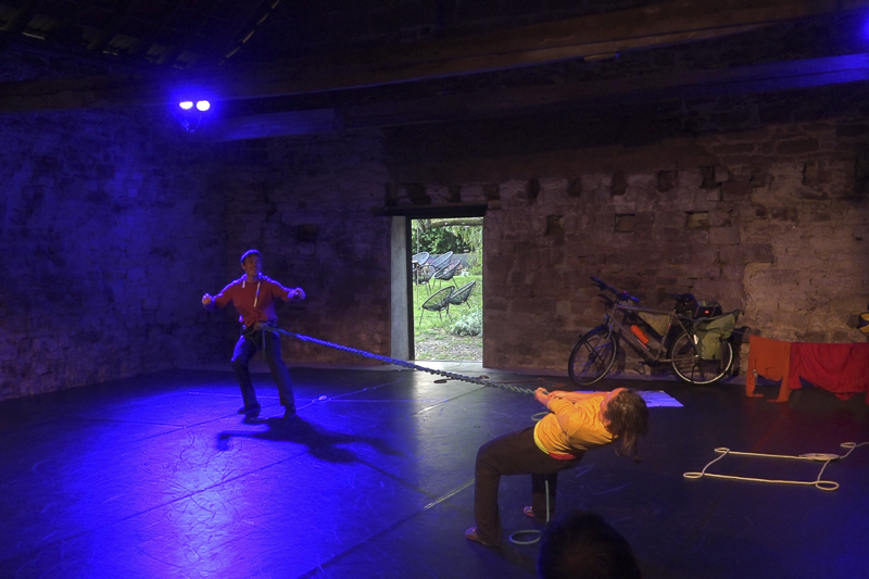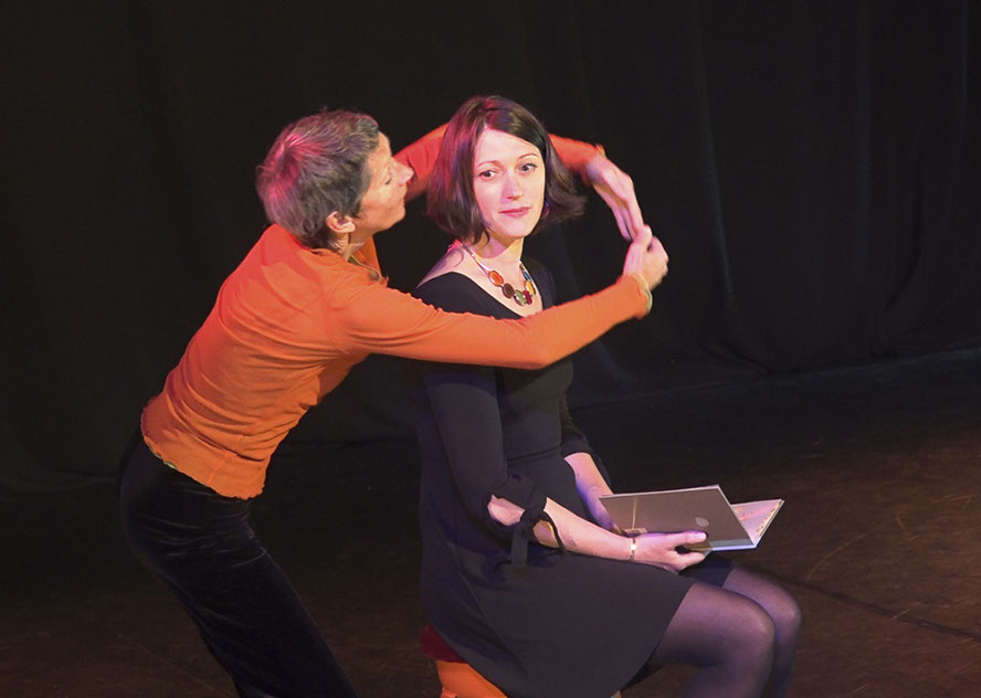 Temps 2 : la danseuse prend la parole, raconte la relation qui s'est établie entre les textes et elle-même lors de sa lecture mais aussi, là, dans l'instant dansé. Puis elle propose à plusieurs personnes du public de venir expérimenter avec elle cette façon simple d'inventer du geste en relation avec le mot.